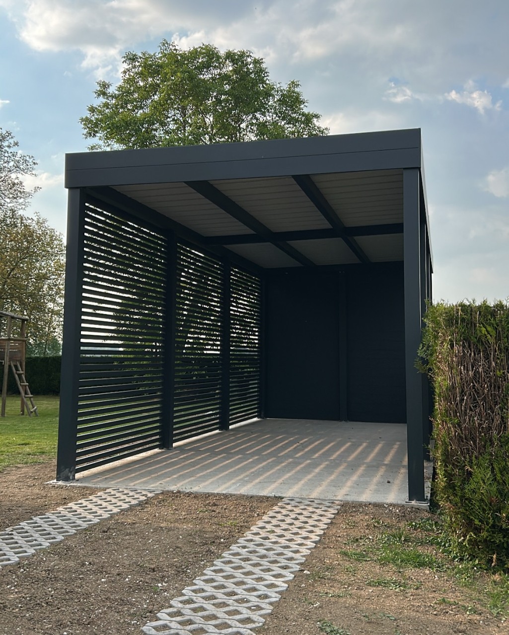 Le carport aluminium est une solution moderne, durable et esthétique pour protéger vos véhicules et aménager votre extérieur. le carport garage aluminium offre une protection efficace contre les intempéries tout en conservant une grande facilité d’accès. Chez EVFP Nature et Paysage, nous concevons et installons des carports aluminium sur mesure, ainsi que des abris de jardin aluminium, adaptés à vos besoins et à votre habitation.